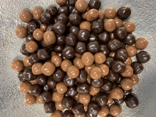Knusprige Dinkekugeln dragiert mit Vollmilch- und Zartbitterschokolade.