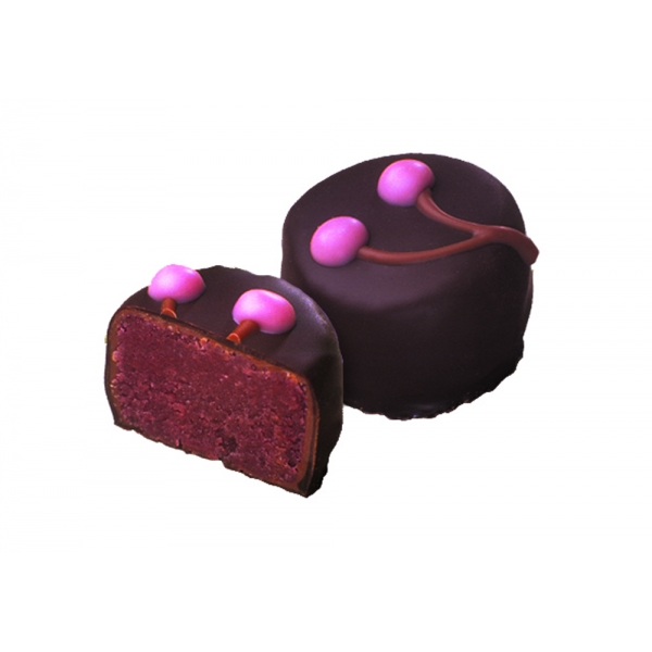 Ingredients: Almonds (31%), Sugar, Cocoa Mass, Sour Cherry Juice Powder (7%) [Glucose Syrup, Sour Cherry Juice Concentrate, Anti-Caking Agent: Silicon Dioxide (E551); Gelling Agent: Pectins (E440)], Water, Cocoa Butter, Invert Sugar, Whole Milk Powder, Glucose Syrup, Cherry Brandy, Humectant: Sorbitols (E420); Natural Flavour, Emulsifier: Lecithins [Soy] (E322); Natural Vanilla Flavour, Decor [Colour: Carmines (E120)].